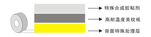 采用高强度,柔软性优越的皱纹纸为基材,单面涂以橡胶型压敏胶而成。